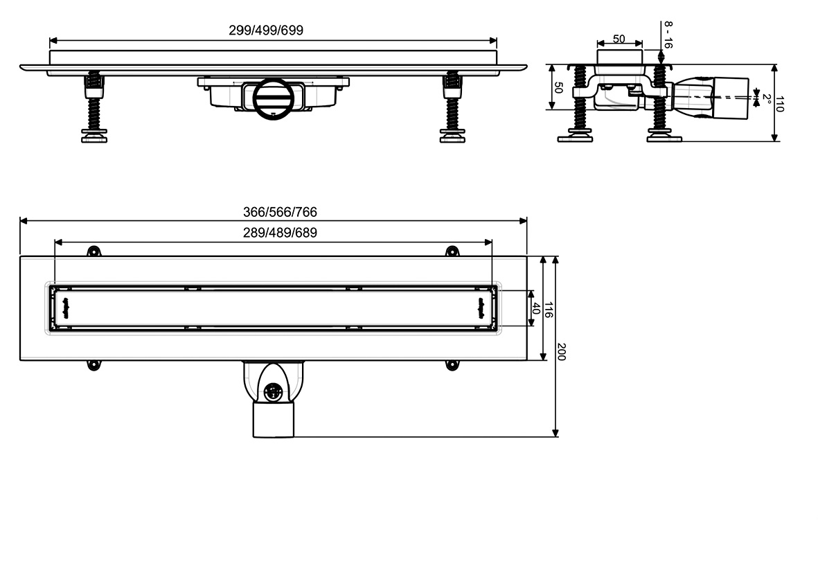 Сливная решетка с отделкой из нержавеющей стали или под плитку.