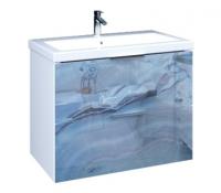 Marka One Подвесная тумба с раковиной Liriya 75П с двумя встроенными ящиками, Blue marble