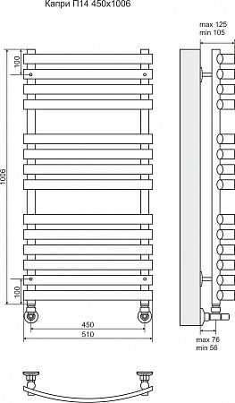 Terminus Полотенцесушитель водяной "Капри" П14 450х1006 мм (6+4+4)