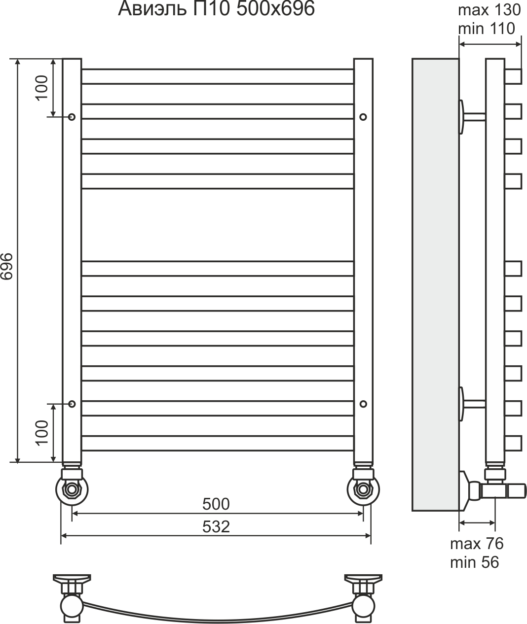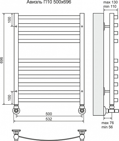 Terminus Полотенцесушитель водяной "Авиэль" П10 500х696 мм (6+4)