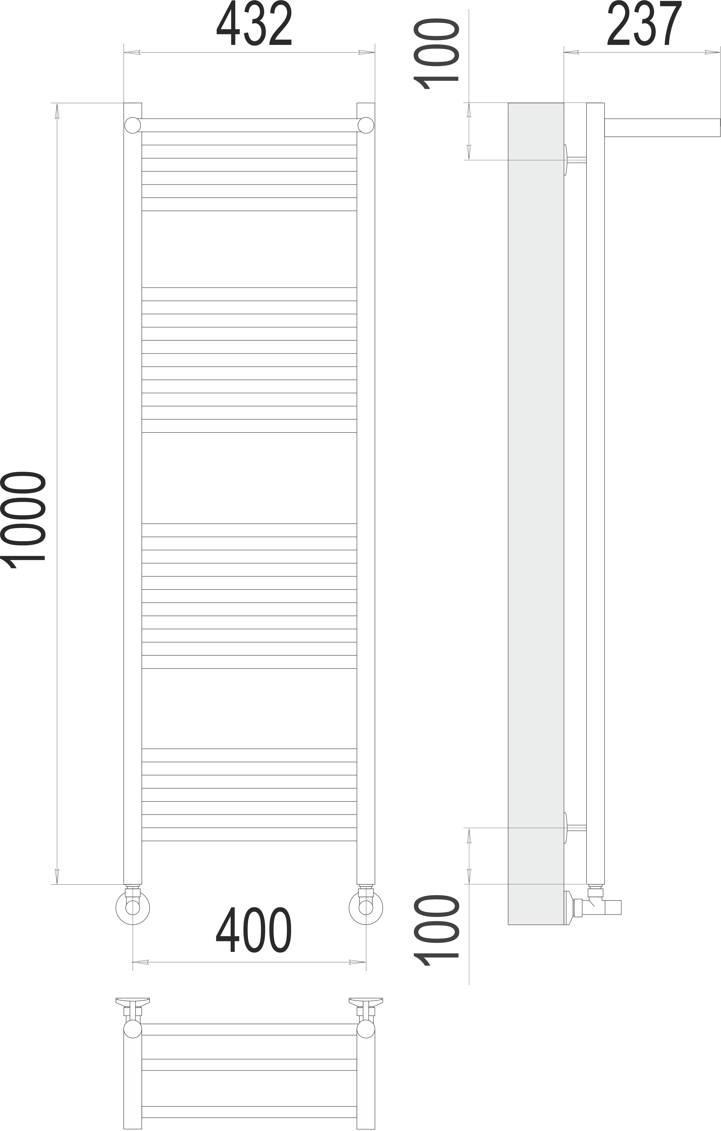 Terminus Полотенцесушитель водяной "Аврора" с одной полкой П20 400х1000 мм