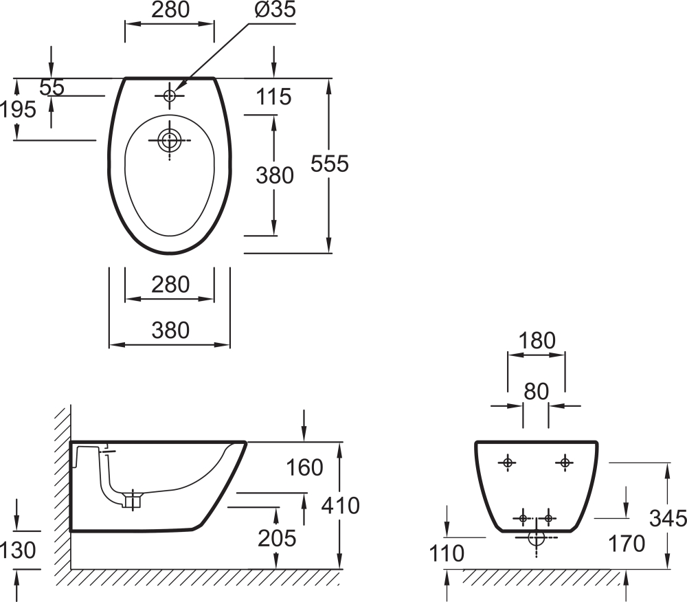 Корпус биде изготовлен из белоснежного фарфора. Материал обладает устойчивость к повреждениям и низким коэффициентом поглощения воды. На поверхности легко очищается грязь и сохраняется первоначальный цвет и блеск.