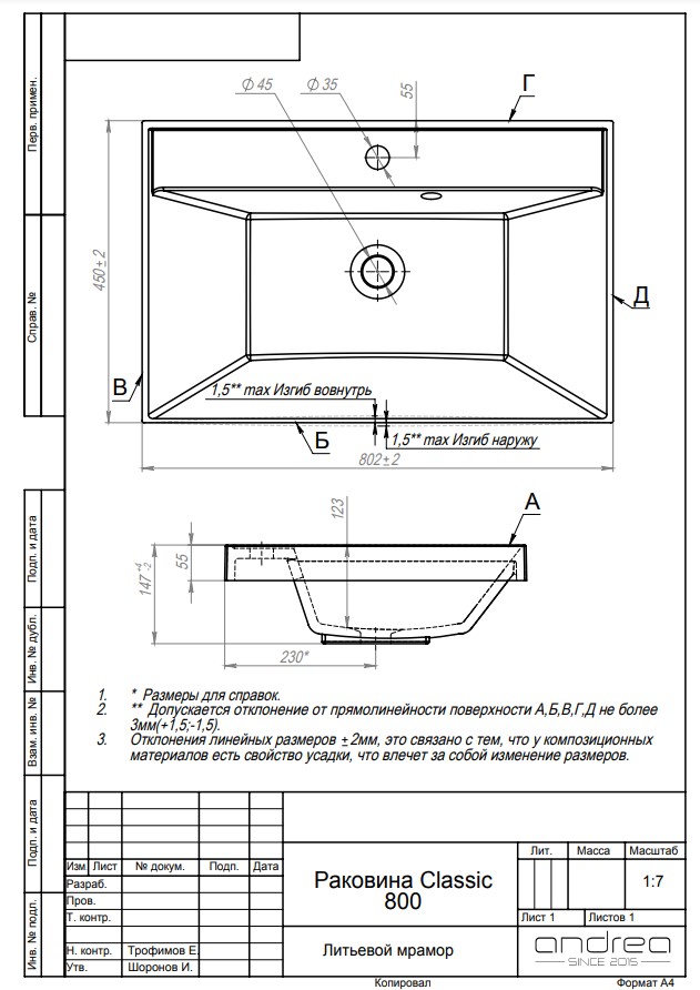 Преимущества раковин Andrea: