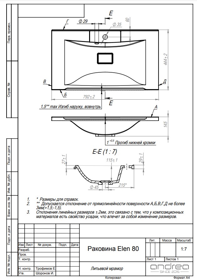 Andrea Раковина Elen, 80 см