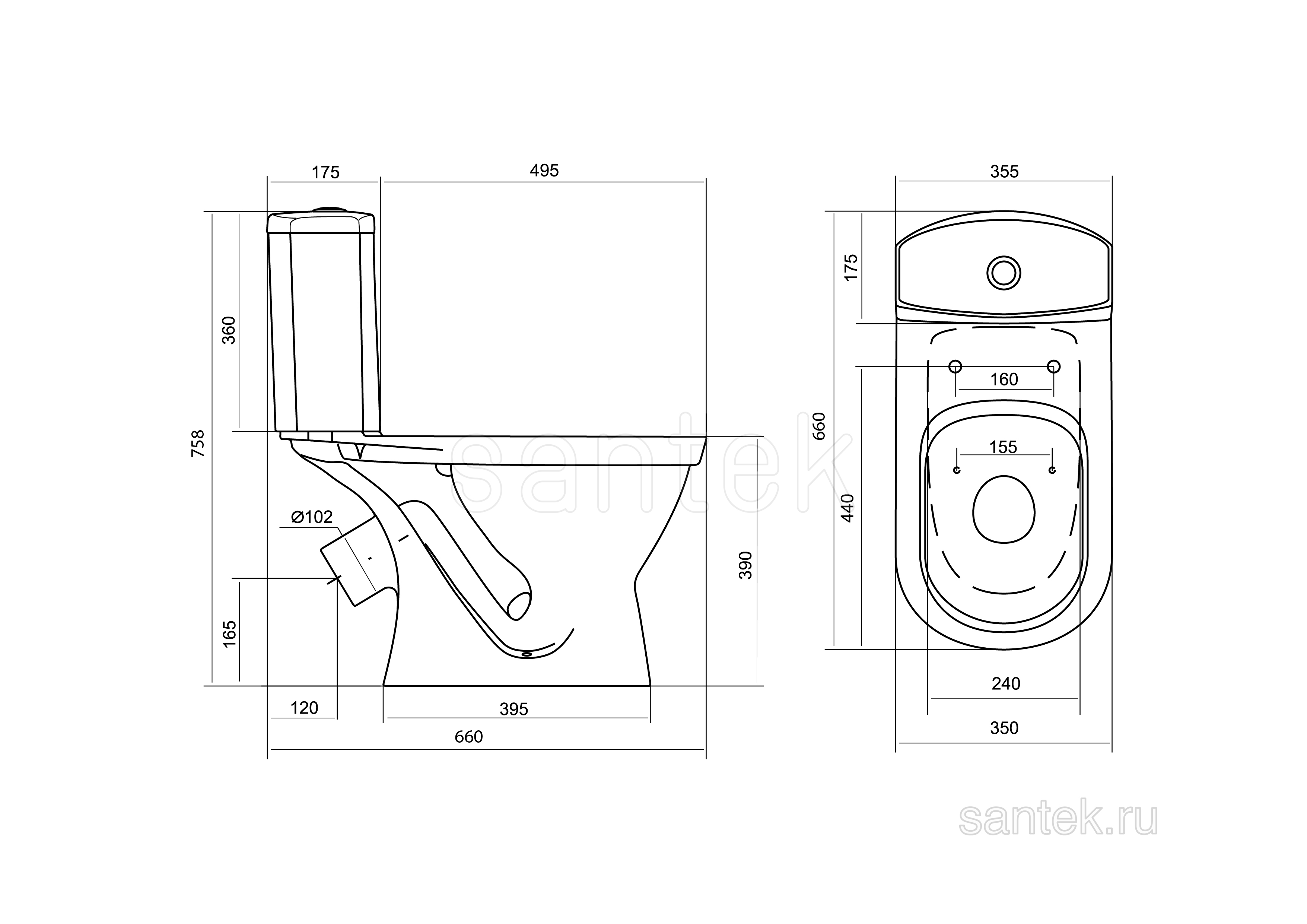 Унитаз-компакт Santek "Алькор" полипроп. сиденье косойКак купить