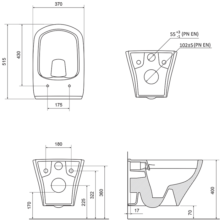 Дополнительно к унитазу мы рекомендуем приобрести монтажный блок (инсталяцию) для подвесного унитаза, кнопку управления смывом и сиденье, оснащенное системой замедленного опускания SoftClose – Classic или Classic Slim.