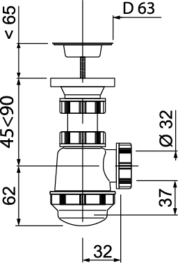 Сифон сверхкомпактный с выпуском для биде или раковиныКак купить