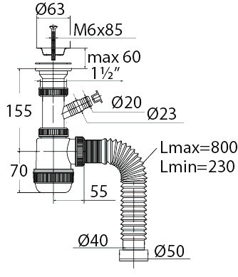Сифон "МИНИ Элит" с нержавеющей чашкой, отводом и гибкой трубойКак купить