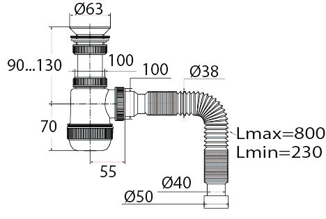 Сифон предназначен для отвода воды из нержавеющих и эмалированных моек, а также чугунных и фаянсовых раковин.