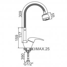 LEDEME 4302-В Смеситель для кухни с гибким изливом и гайкой
