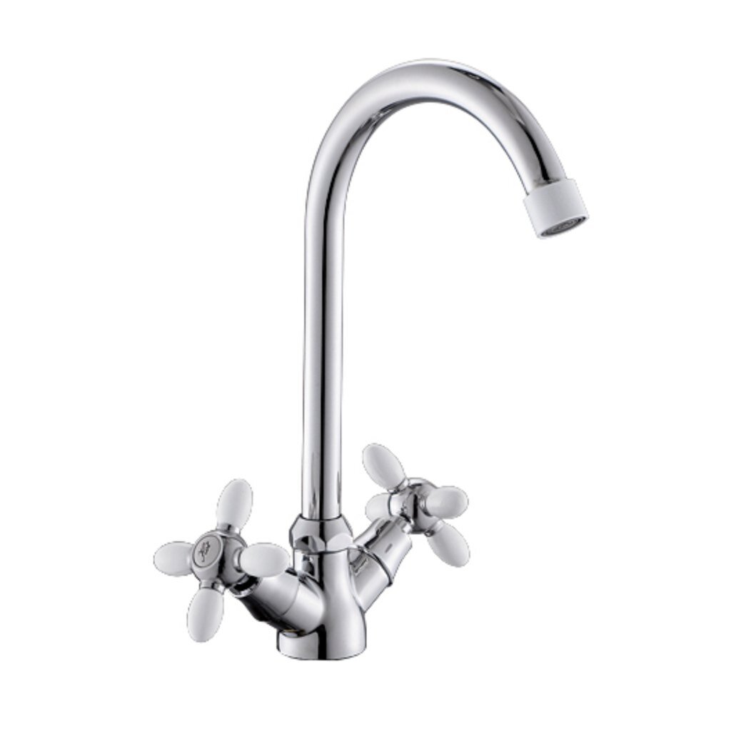 Антей Смеситель д/кухни с 2-мя рукоятками с высоким изливом, цв. нак. и руч.белый Радуга 5970717 АНТЕЙ