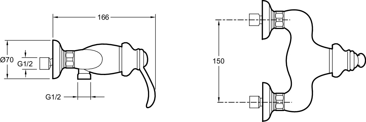 Настенный смеситель для душа FAIRFAX обладает следующими техническими характеристиками: