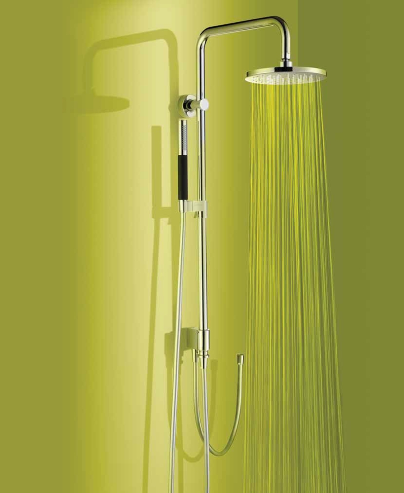 Душевой комплект EO – элегантное решение для ванной комнаты. В комплект входят стойка с держателем, круглая панель верхнего душа и ручная лейка. Верхний душ поворачивается под нужным углом и создает эффект «тропического ливня». Ручная лейка работает в двух режимах.