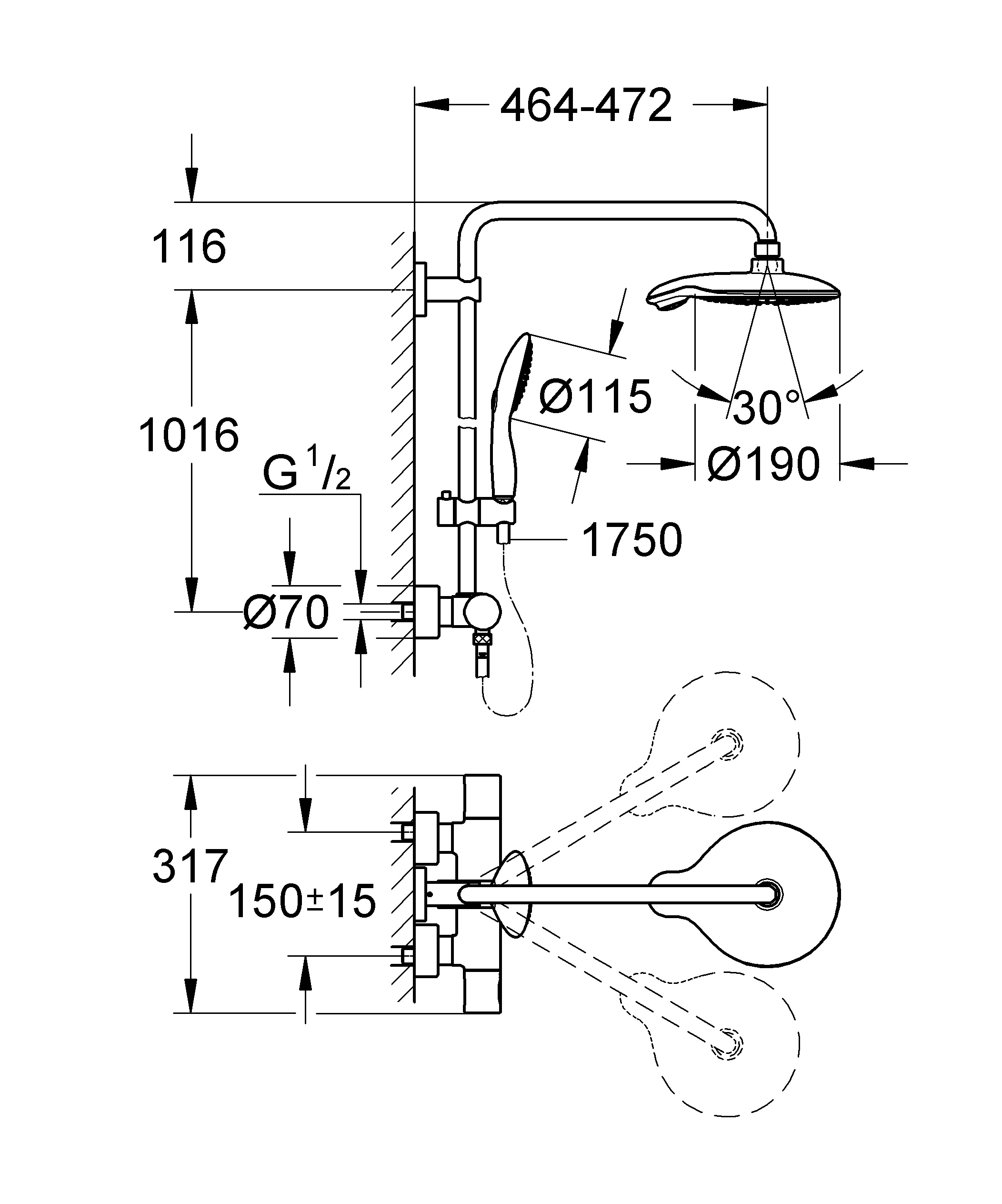 GROHE Душевая система Power&Soul System с термостатическим смесителем