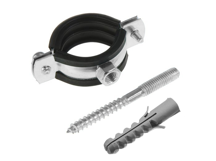 Хомут сантехнический 1 (32-37), гайка М8 со шпилькой и дюбелемКак купить