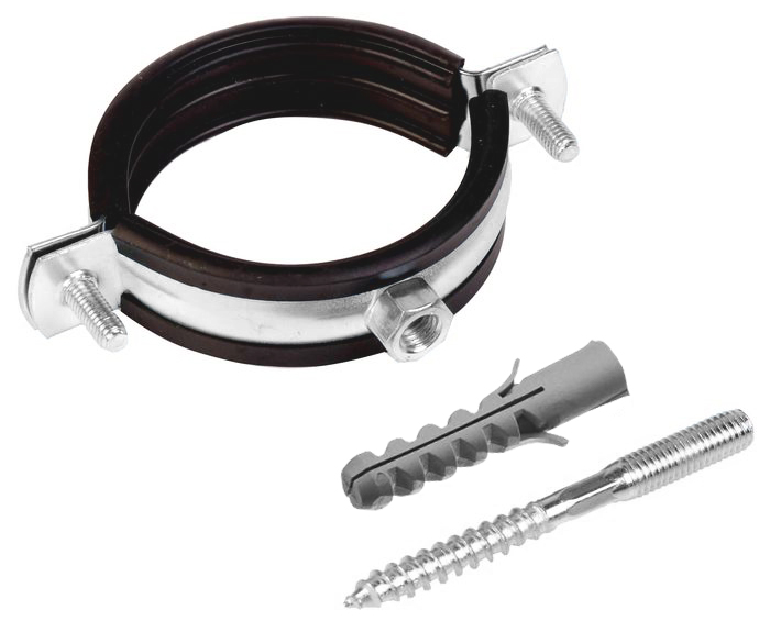 Хомут (2") с шпилькой и дюбелем предназначен для жесткого крепления различных видов металлических и полимерных труб. Крепление предназначено для труб диаметром 60-64 мм.