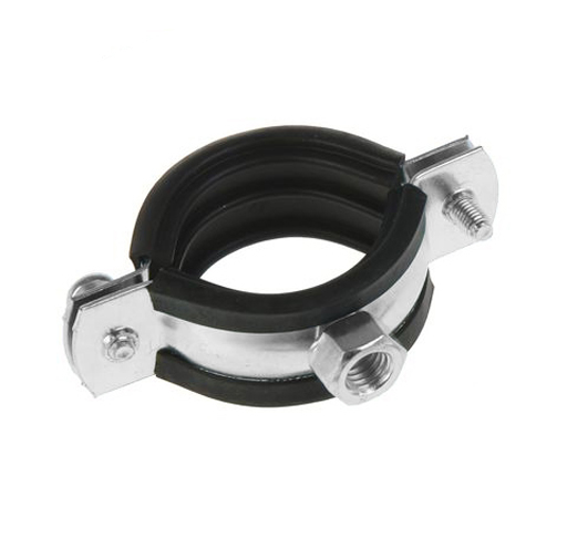 Хомут выполнен из оцинкованной стали, которая устойчива к коррозии. Внутренняя часть снабжена профилированной резиновой прокладкой.