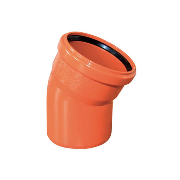 Отвод наружной канализации из ПВХ повышенной прочности, используется для изменения направления канализационных дренажных труб, отличается надёжными резиновыми уплотнителями имеющими повышенный срок службы.