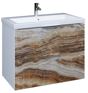 Marka One Подвесная тумба с раковиной Idalgo 75П с двумя встроенными ящиками, Onyx