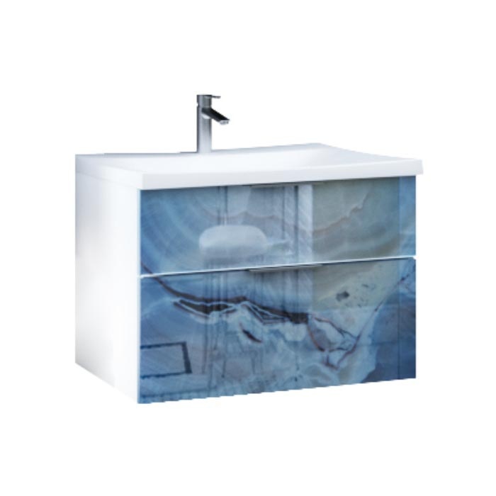 Marka One Подвесная тумба с раковиной Idalgo 75П с двумя встроенными ящиками, Blue marble