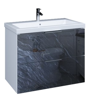 Подвесная тумба с раковиной Liriya 75П с двумя встроенными ящиками, Black stoneПокупка в интернет-магазине КВАРТАЛ — выгодная и безопасная!