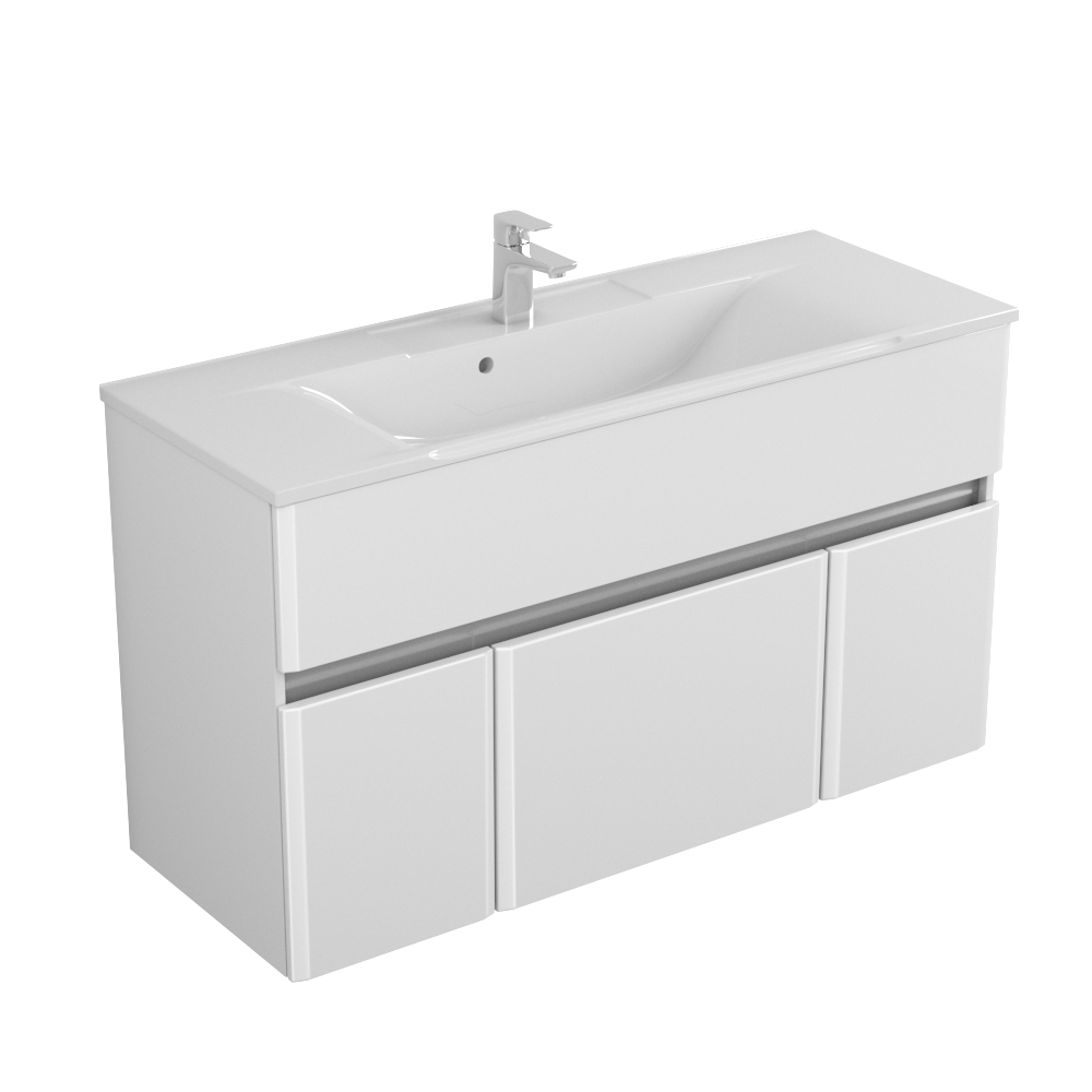 Гарнитуры комплектуются отдельно керамическими умывальниками. К данной тумбе отлично подходит умывальник Elen 120 (Арт. 8712).