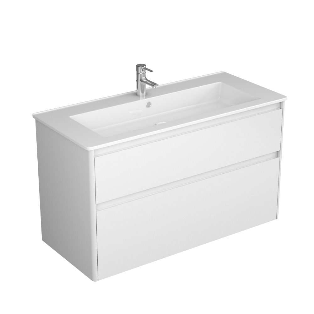 Гарнитуры комплектуются отдельно керамическими умывальниками. К данной тумбе отлично подходит умывальник Оскар 1050 (Арт. 30656).