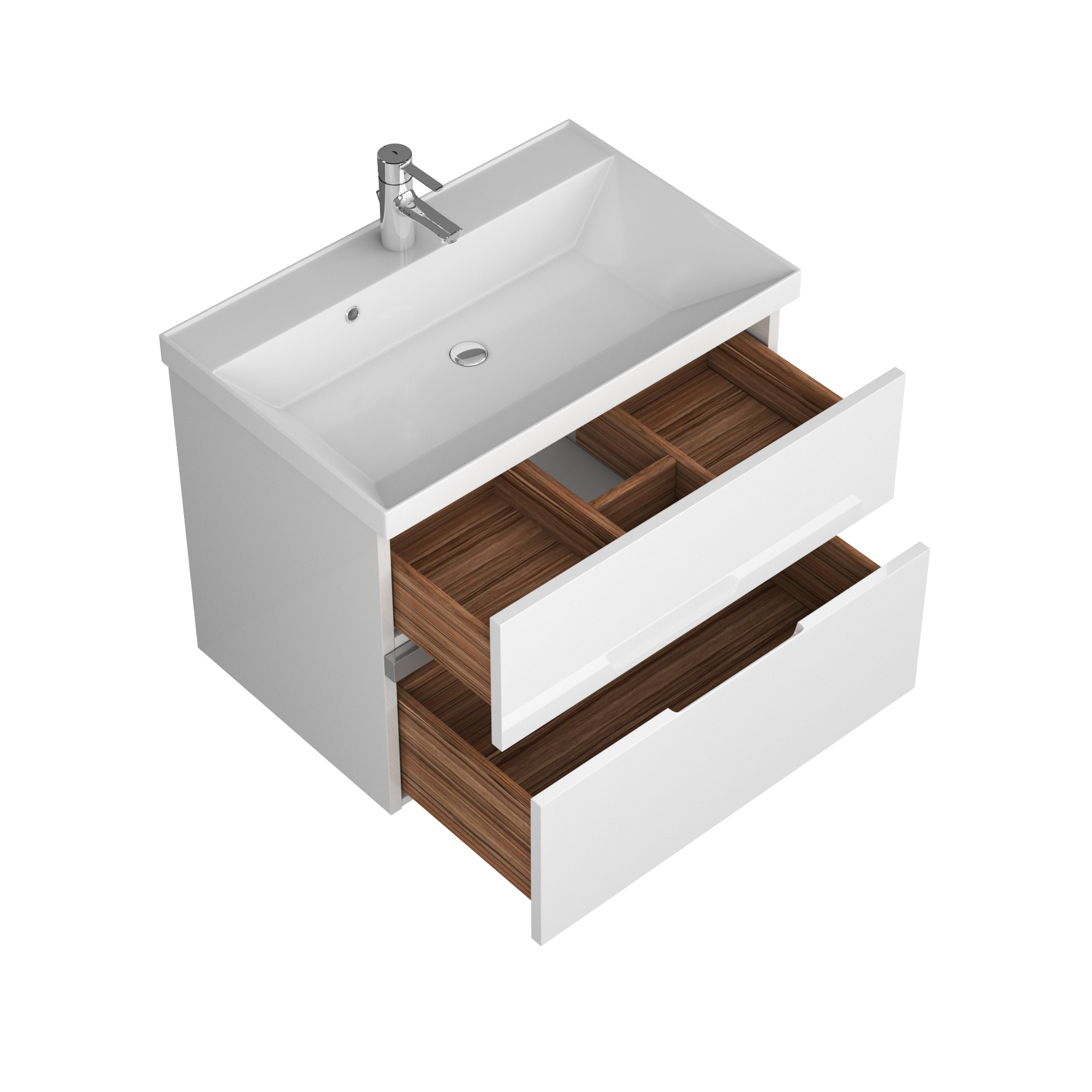 Тумбы Allia имеют выдвижные ящики - они оснащены разделительными системами, оснащены рейлингами для устойчивого хранения предметов, системы плавного закрывания создают максимальный комфорт и безопасность.
