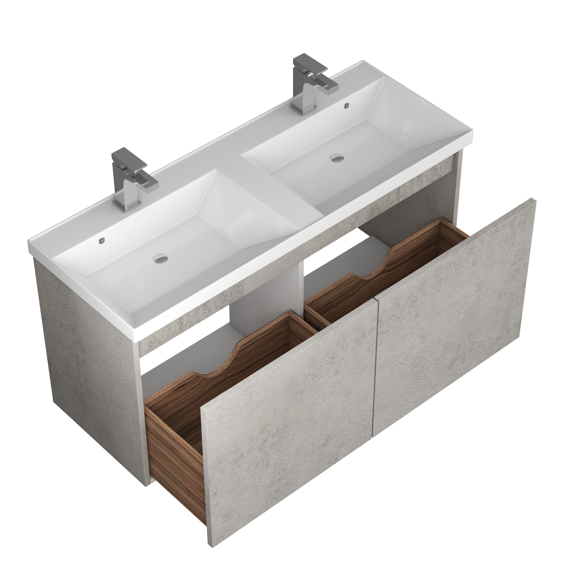 Тумбы STOUN имеют каменную текстуру и выдвижные ящики - они оснащены разделительными системами, оснащены рейлингами для устойчивого хранения предметов, системы плавного закрывания создают максимальный комфорт и безопасность.