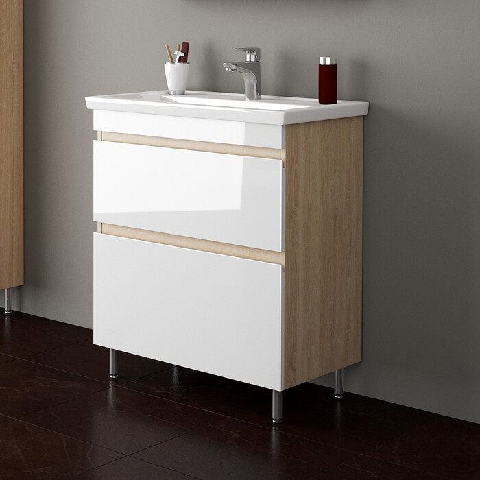 Гарнитуры комплектуются отдельно умывальниками. К данной тумбе отлично подходит умывальник Фостер 70 (Арт. 15840).