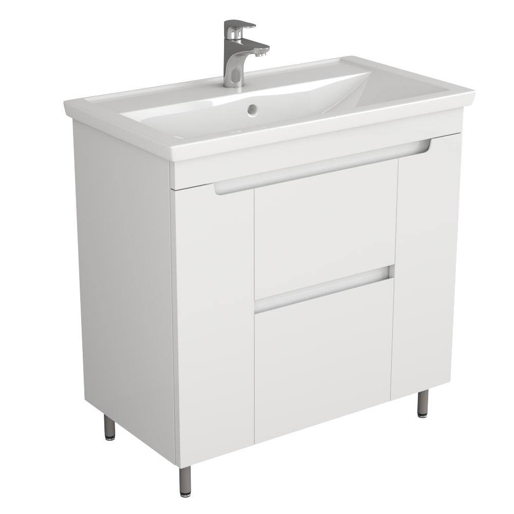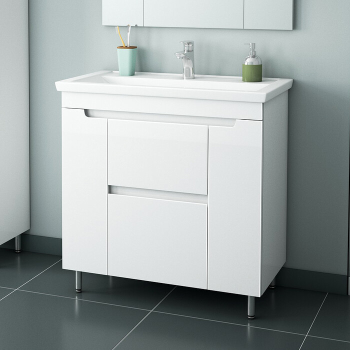Гарнитуры комплектуются отдельно умывальниками. К данной тумбе отлично подходит умывальник Фостер 80 (Арт. 30390).