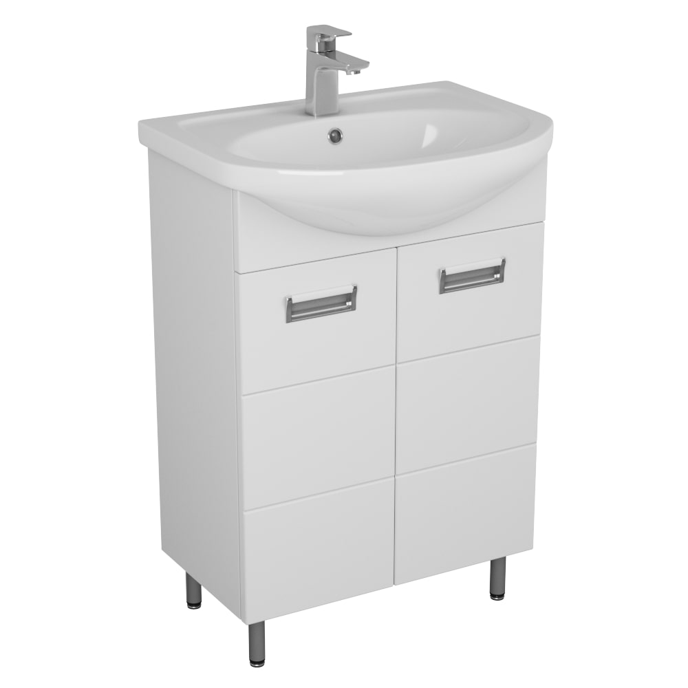 Простая изящность мебели серии Рейн позволяют встроить ее в любой ванный интерьер. Коллекция представляет напольные тумбы шириной 50, 55 и 60 см с 2-мя дверцами и полками. Система направляющих Boyard скрытого монтажа обеспечивает плавное закрывание, защищая корпус и фасад от возможных повреждений. Тумба ставится на 4 металлические ножки, регулируемые в пределах 1,5 см.