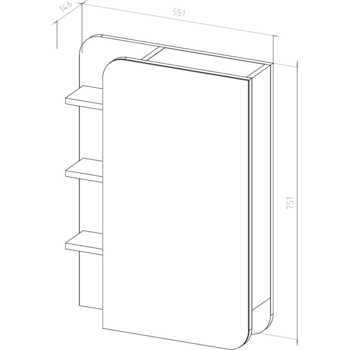 UNCORIA Зеркало-шкаф "Лина" полки справа, белое (55 см)