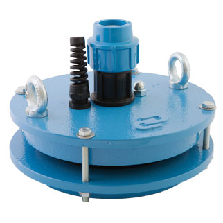 Оголовок позволяет предохранить скважину от попадания в нее поверхностных грунтовых вод и посторонних предметов. Использование оголовка позволяет увеличить надежность подвешивания насоса и упростить эксплуатацию технического колодца, кессона, а также позволяет надежно крепить трос к насосу посредством карабина, подвешиваемого на нижний рым-болт.