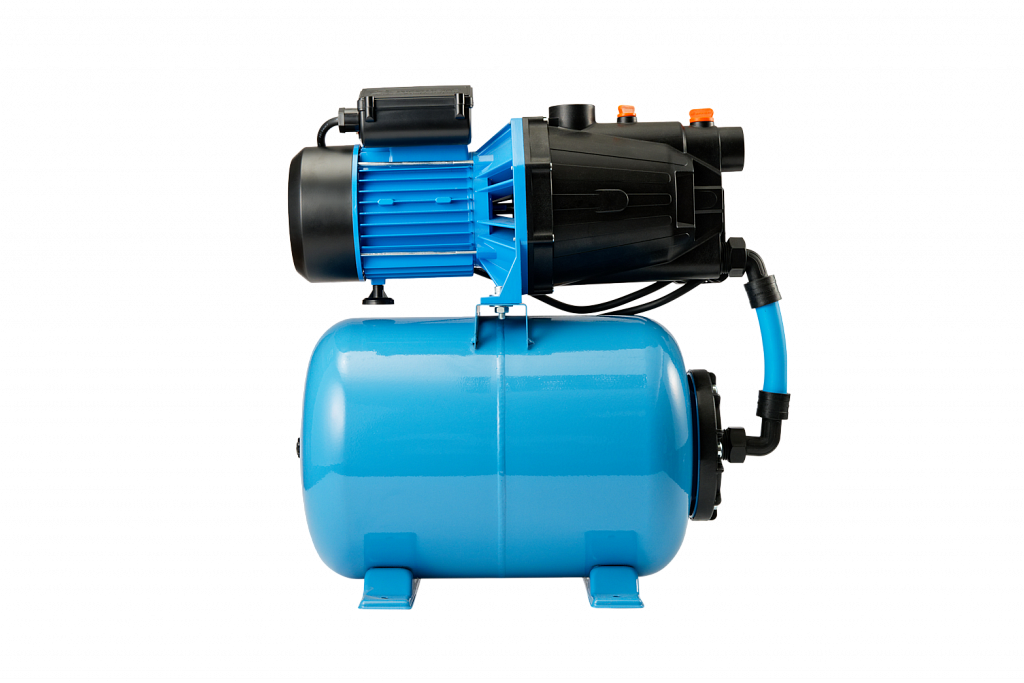 Насосная станция с баком на 24 литра, а также автоматическим включением и выключением по давлению воды. Производительность насоса 70 литров в минуту (или 4,2 м3 в час), максимальный напор составляет 50 метров. Корпус насоса из пластика, гидроаккумулятор из углеродистой стали.