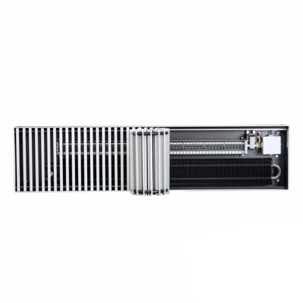 Решетка может быть изготовлена из анодированного алюминиевого профиля, полированной нержавеющей стали или ценных пород дерева под дизайн пола. Конвекторы выпускаются проходными или концевыми, с одним или двумя теплообменниками. Приборы могут быть выполнены в угловом и радиусном исполнении, могут быть встроены в подоконник.