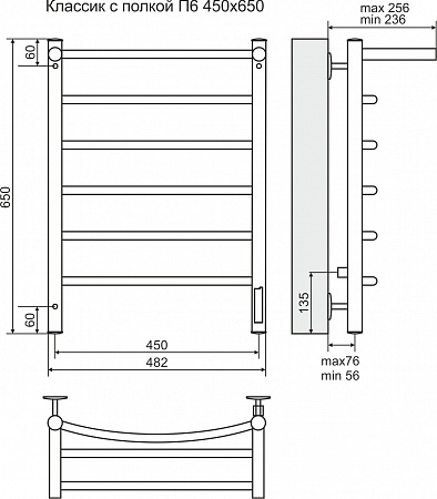 Полотенцесушитель электрический "Классик" П6 с полкой 450х650 мм (встроен диммер)Как купить