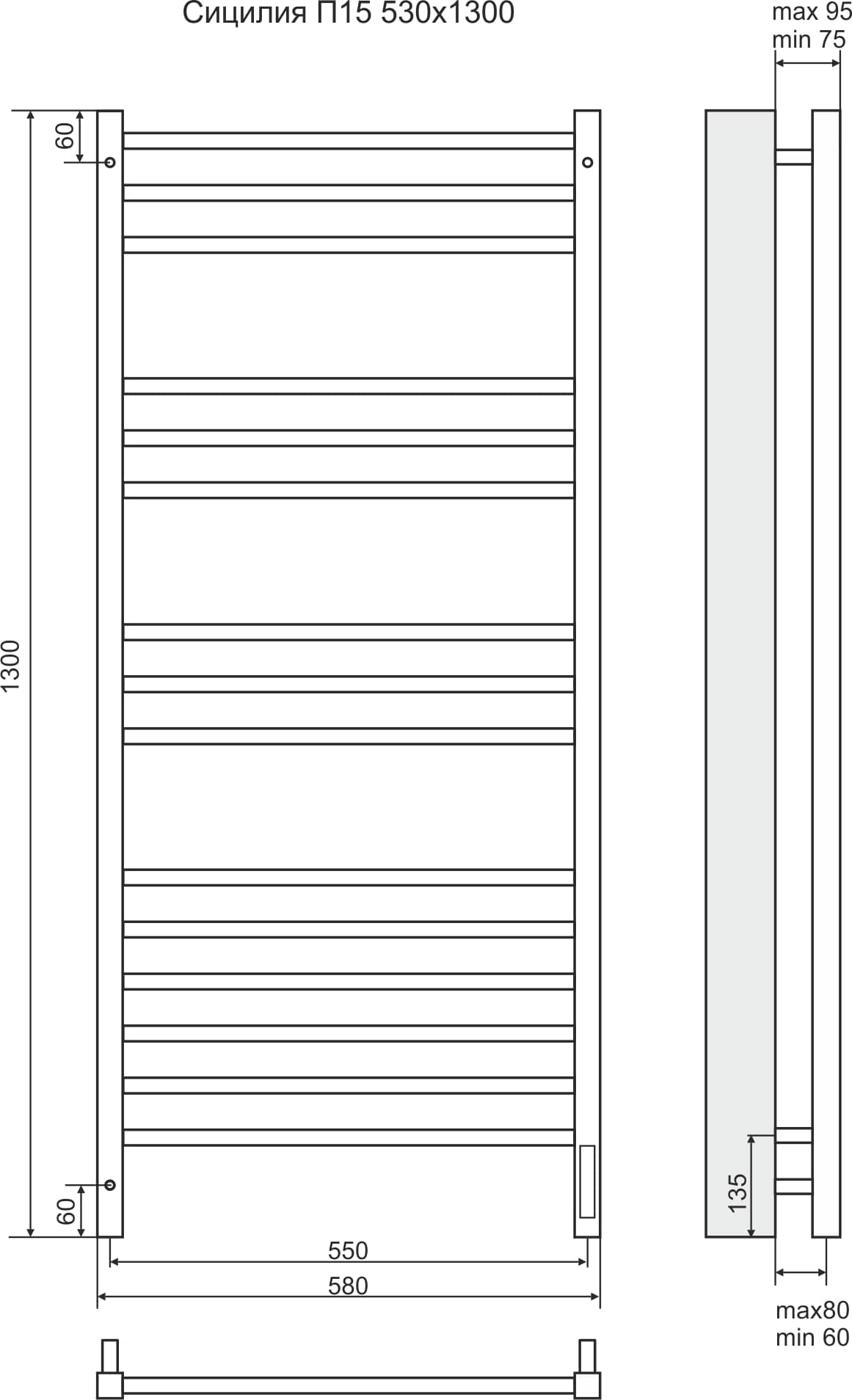 Terminus Полотенцесушитель электрический "Сицилия" П15 500х1300 мм (sensor quick touch)