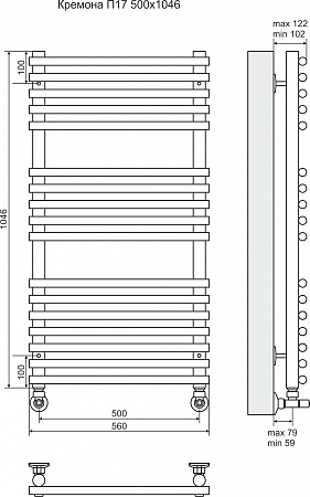 Terminus Полотенцесушитель водяной "Кремона" П17 500х1046 мм (7+5+5)