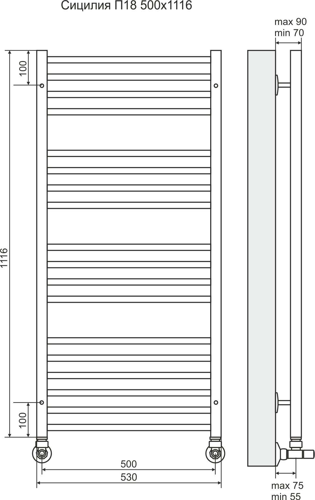 Terminus Полотенцесушитель водяной "Сицилия" П18 500х1116 мм (6+4+4+4)
