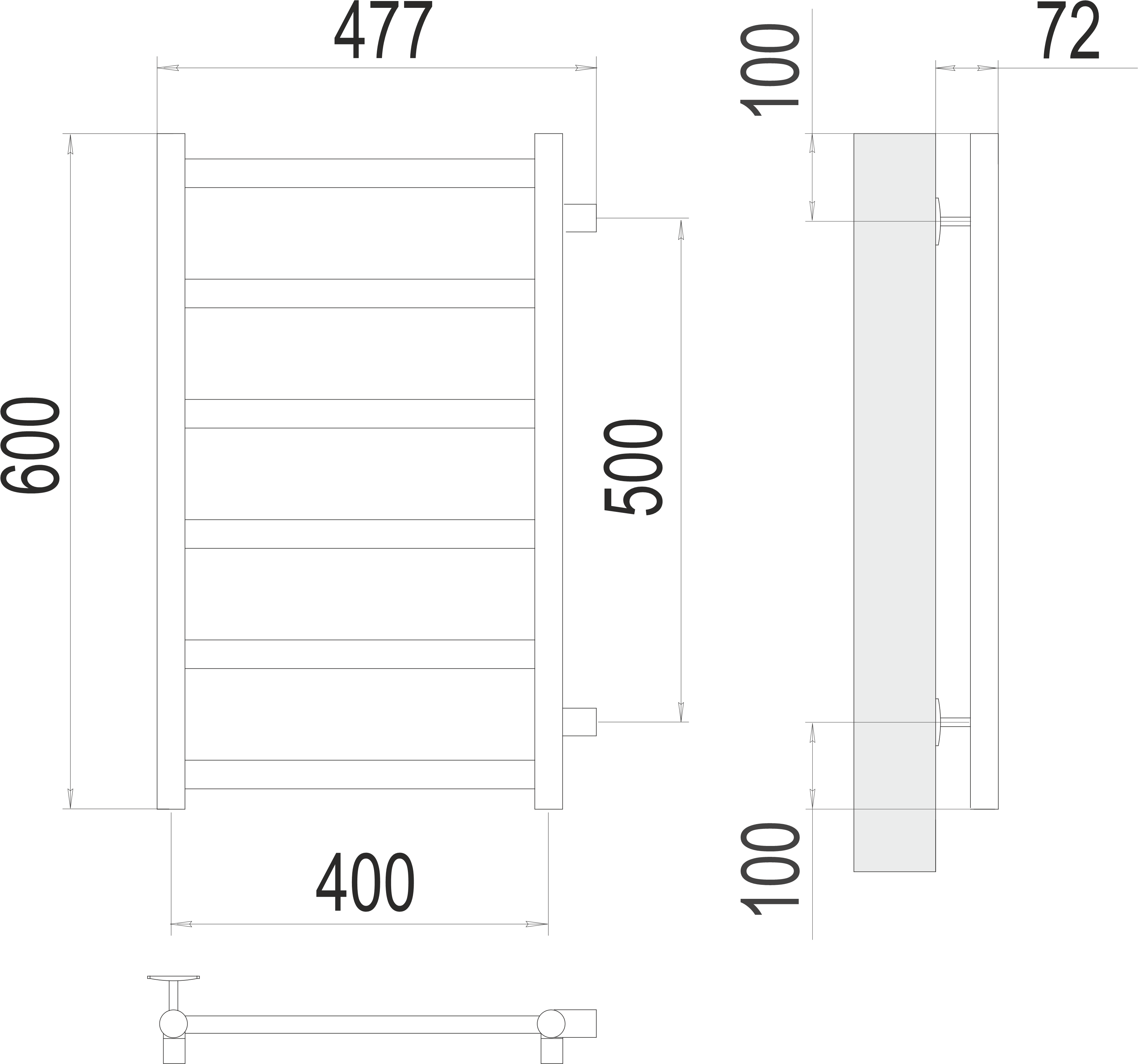Terminus Полотенцесушитель водяной "Аврора" П6 400х600 (боковое подключение 500 мм)