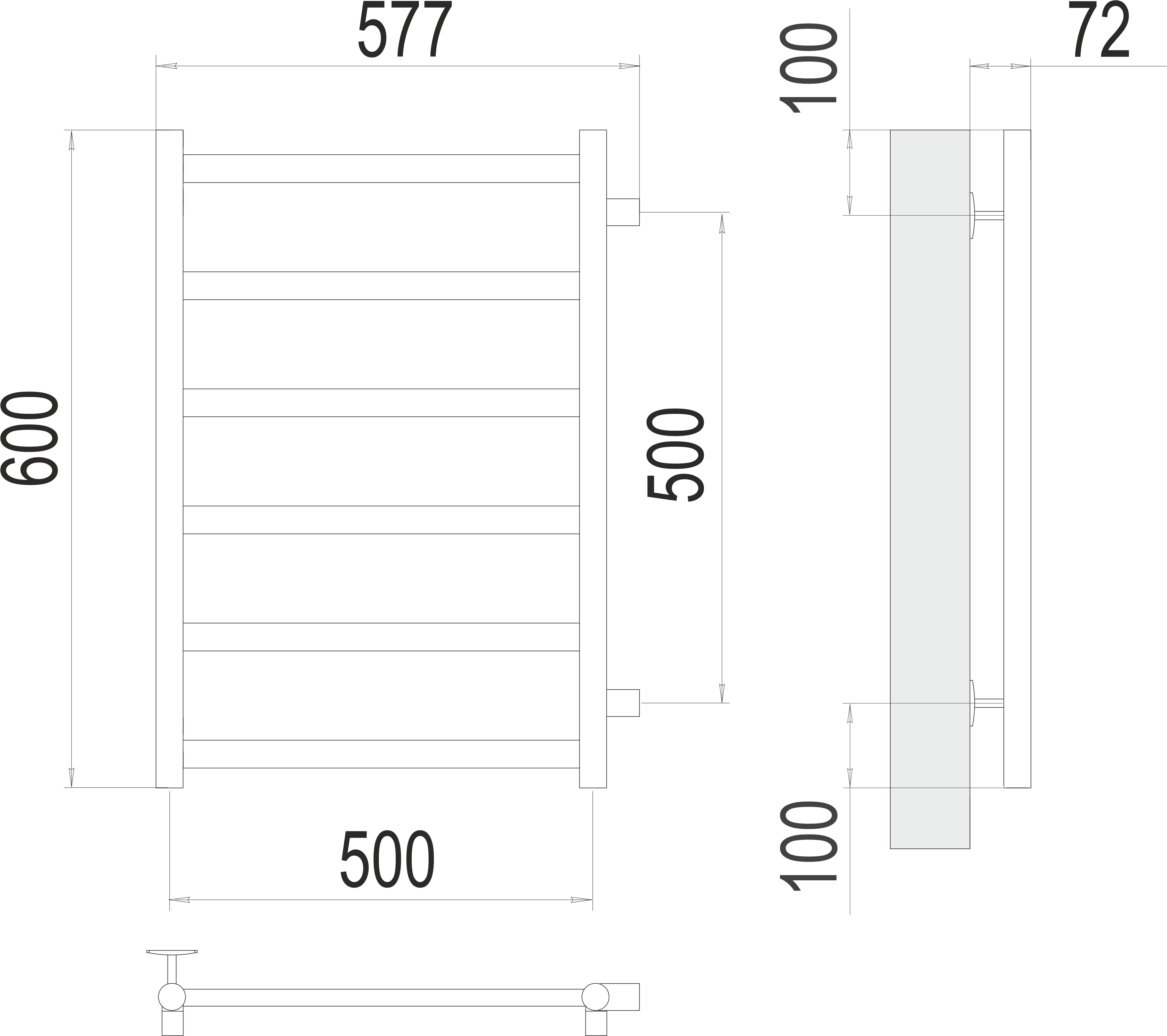 Terminus Полотенцесушитель водяной "Аврора" П6 500х600 мм (боковое подключение 500 мм)