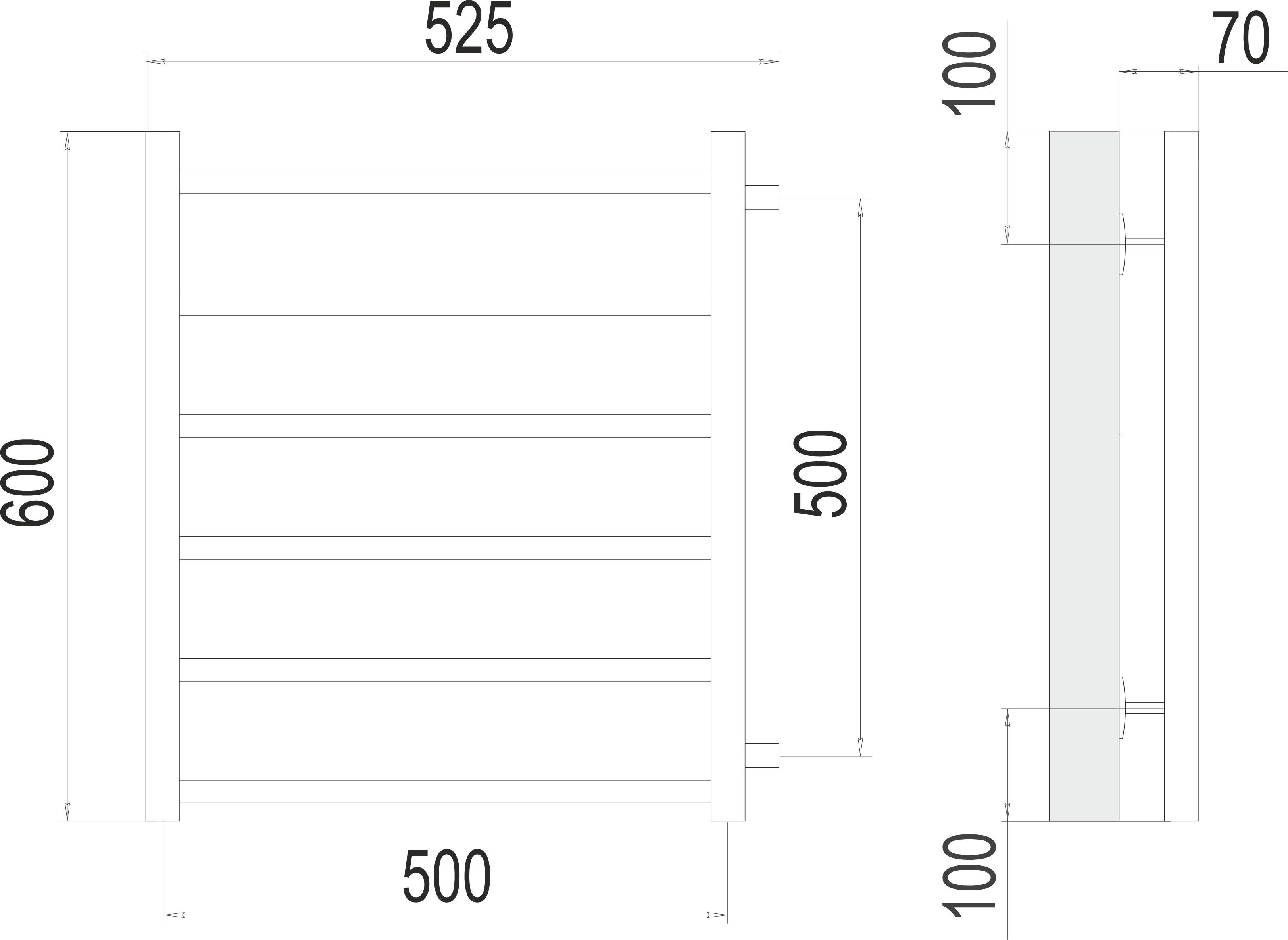 Полотенцесушитель водяной Terminus Вега П6 500х600 мм (боковое подключение 500 мм)