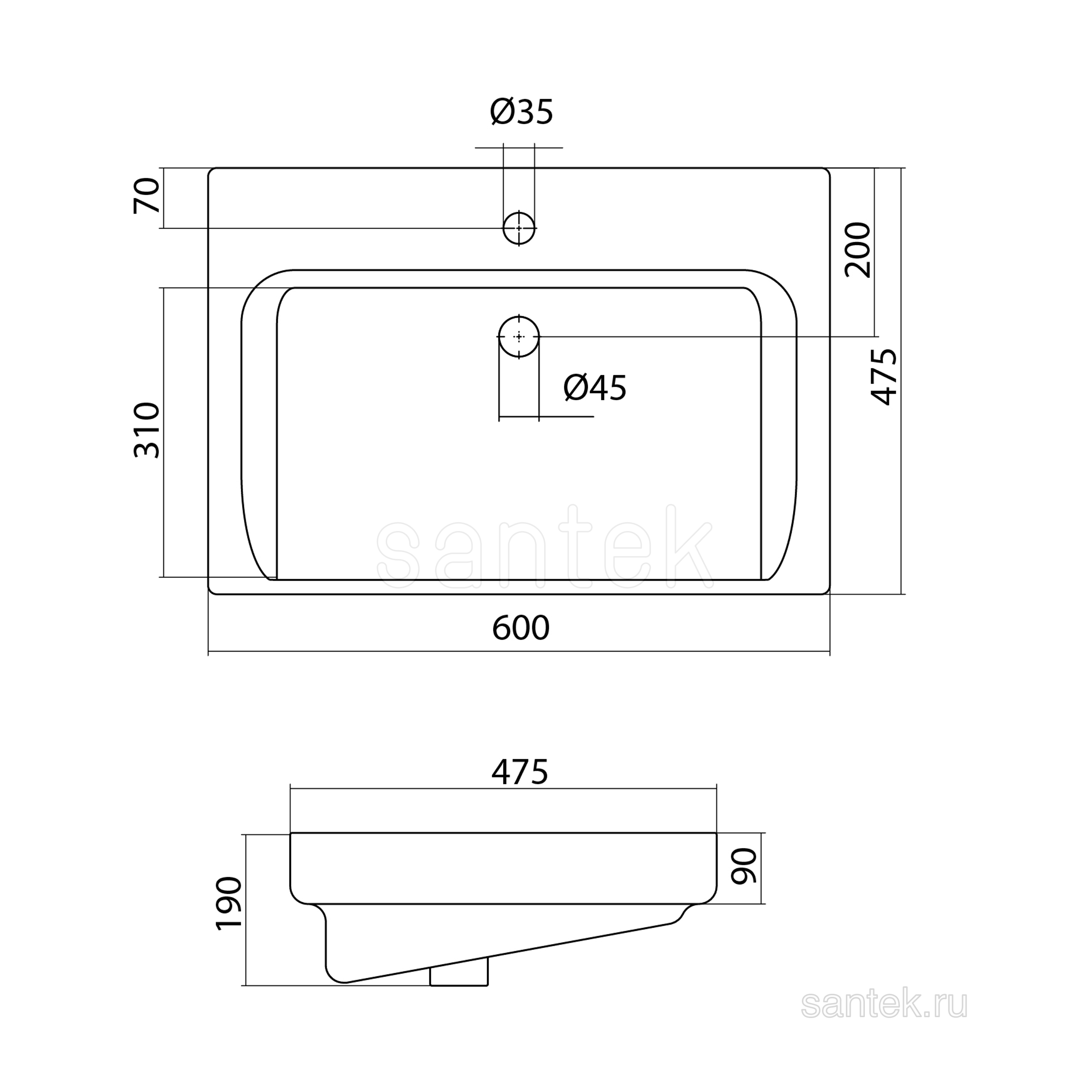 SANTEK Раковина Тигода, 60 см