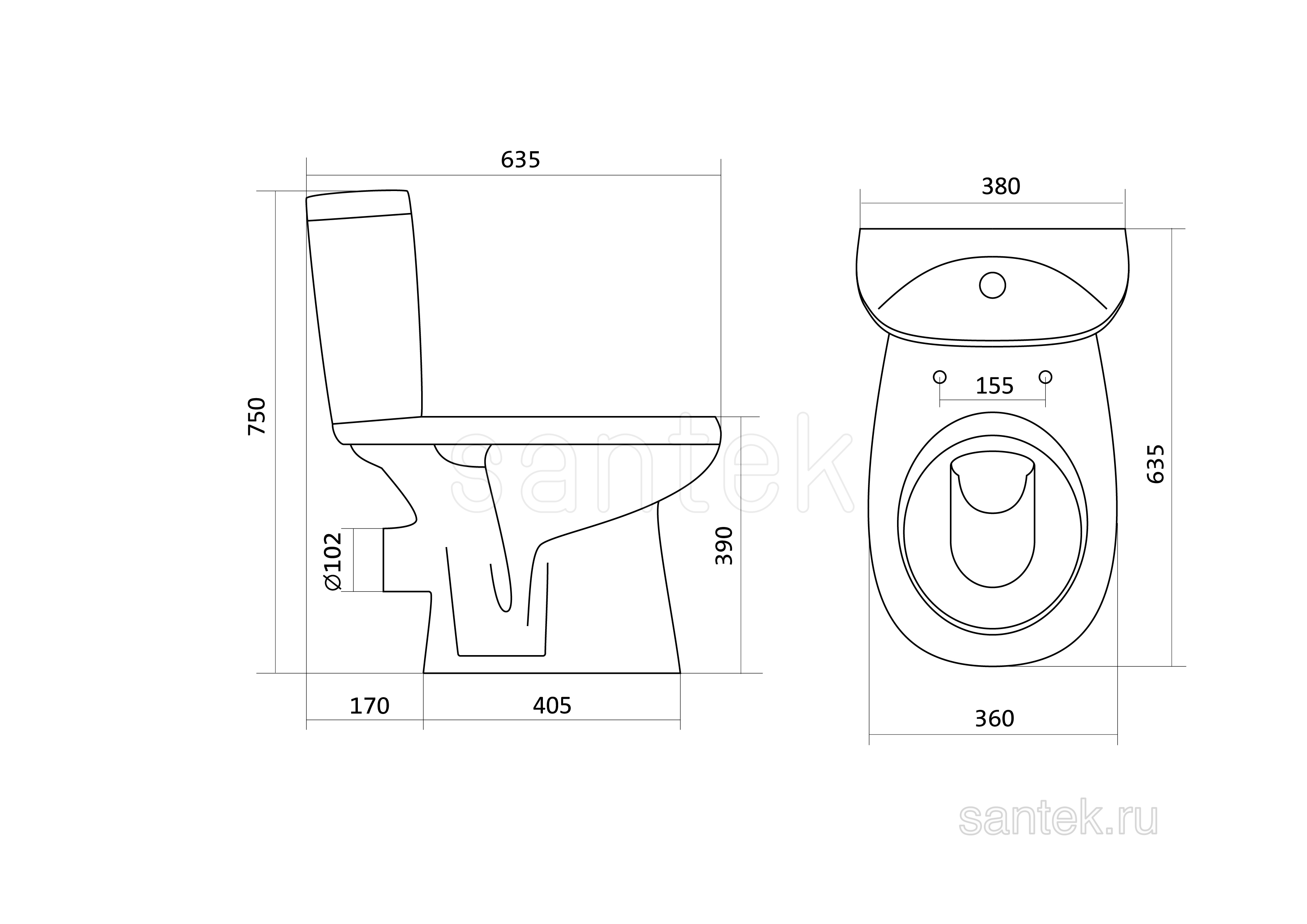 SANTEK Унитаз-компакт Анимо дюропластовое сиденье горизонтальный выпуск