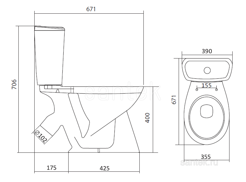 SANTEK Унитаз-компакт Бриз полипропиленовое сиденье