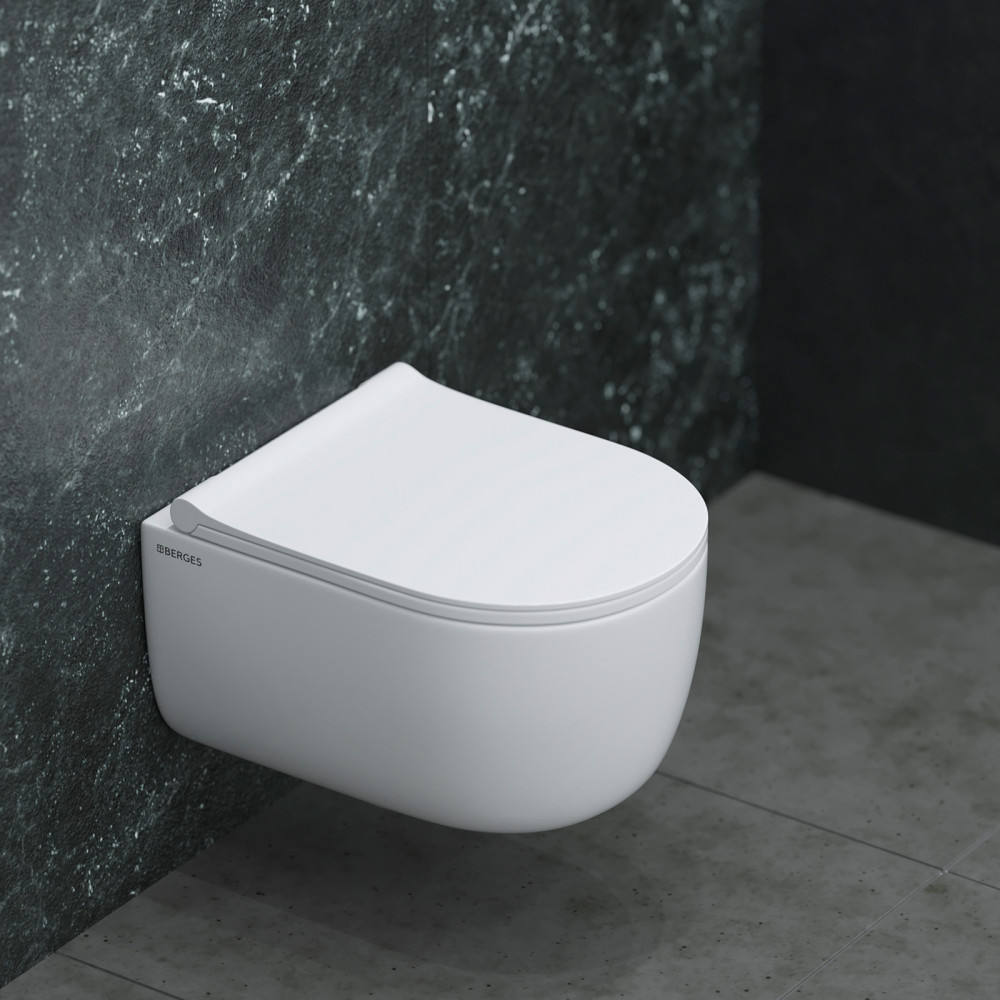 BERGES Унитаз подвесной Ego (безободковый, с сиденьем дюропласт Toma Slim SO, микролифт)