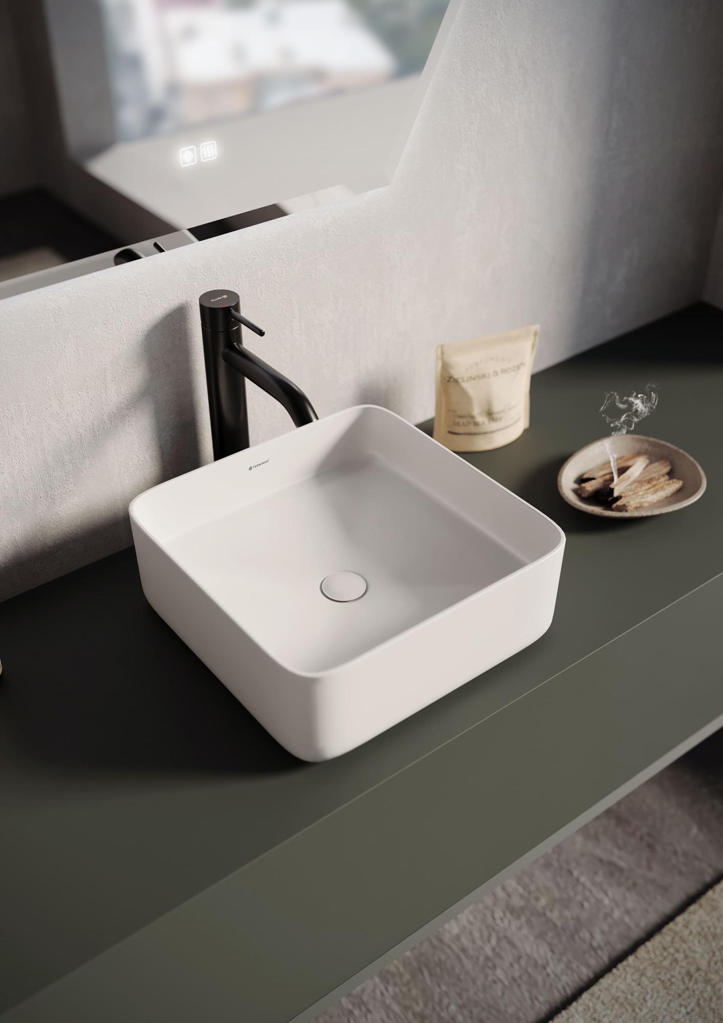 Накладная раковина Ватикан выполнена в квадратном форм-факторе.