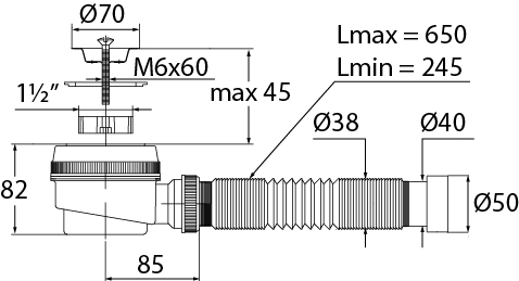 VIRPLAST Сифон "Элит" для душ.поддона с нержавеющей чашей 70и гибкой трубой (1 1/2-40/50)