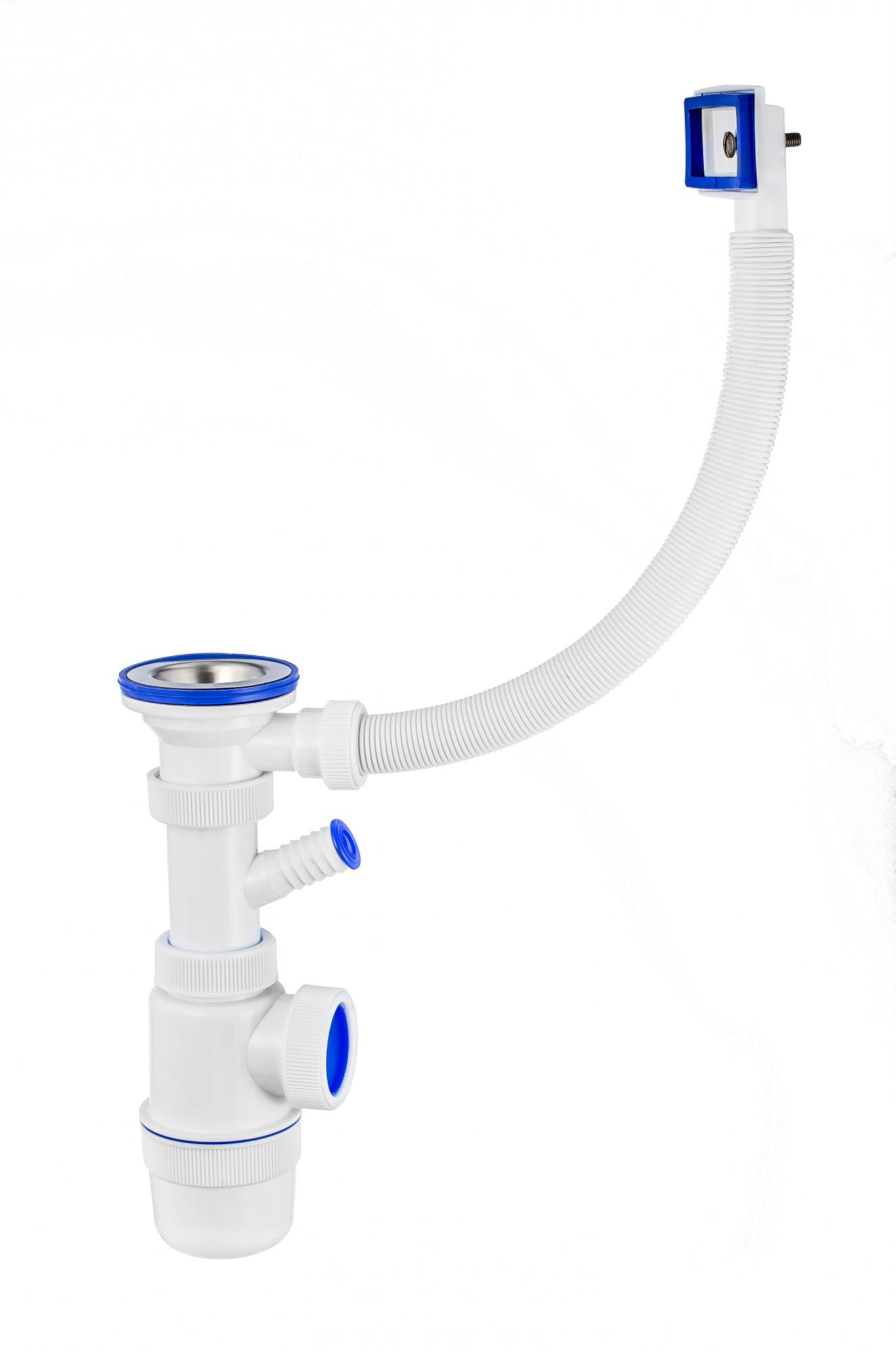 VIRPLAST Сифон "Элит" с нержавеющей чашкой, переливом и отводом для стиральной машины